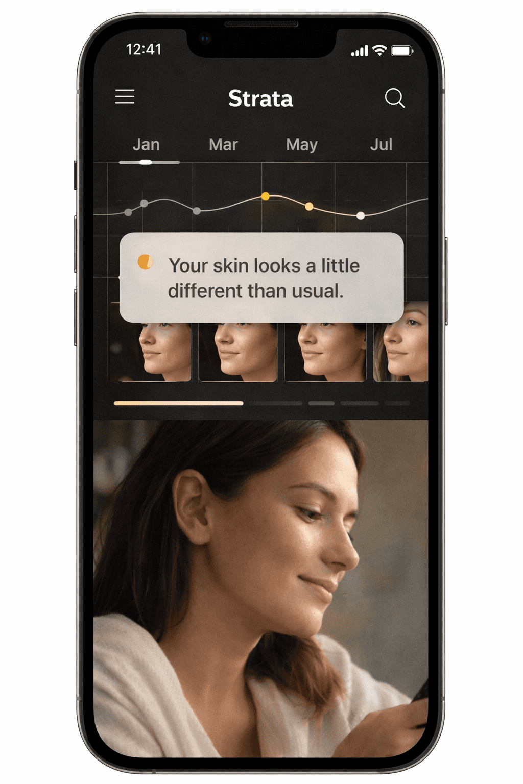 Track your skin’s evolution with cutting-edge analytics. Strata Skin gives you actionable insights about your skin, helping you understand changes over time for smarter skincare decisions.